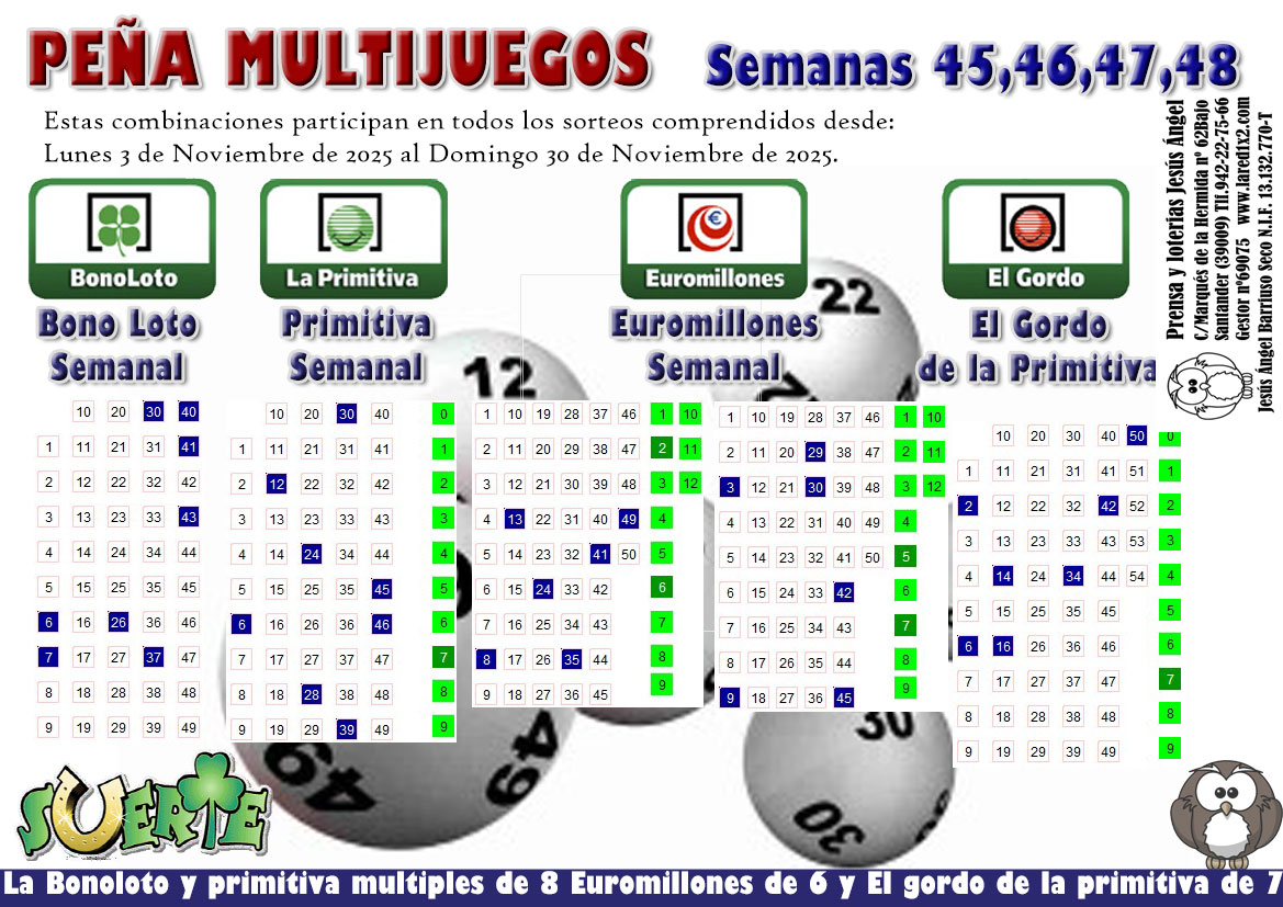 Hoy comenzamos un nuevo ciclo de nuestra peña multijuegos (45) serán las semanas 45,46,47,48 y van desde el 03/11/2025 al 30/11/2025. En el anterior ciclo (41) cada papeleta de 24€ tiene para cobrar 7,15€.